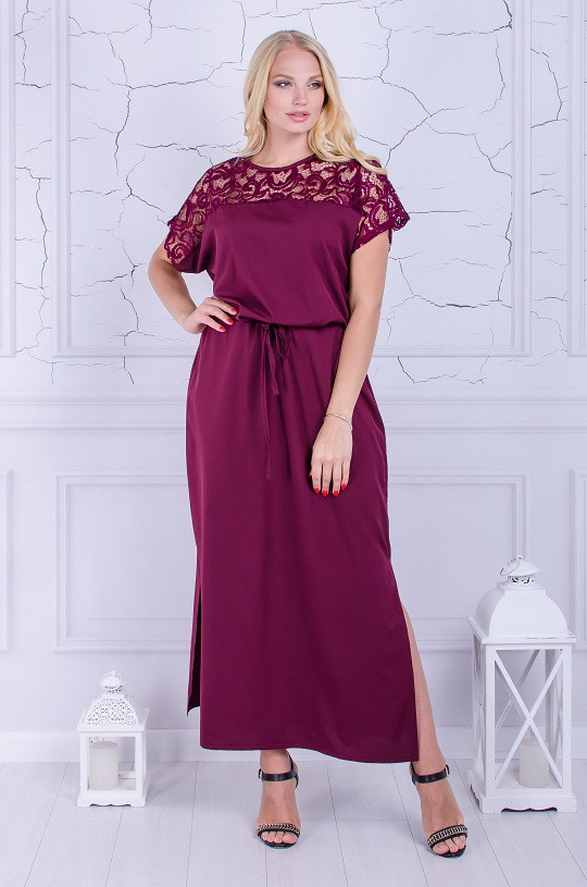 Це елегантне плаття з струмує софта стане відмінним рішенням для будь-якого урочистого випадку. На кожному заході ви будете почувати себе комфортно в цьому вбранні. М'яка тканина створює гарні хвилі, вдало приховують повноту фігури. Футболка доповнено тонким м'яким поясом, що дозволить фіксувати його на талії, як вам зручно. Розріз до середини коліна, ніжна гіпюрова вставка на грудях і рукавах додадуть образу вишуканої сексуальності. У тандемі з високим каблуком це плаття виглядає дуже стильно і вишукано.